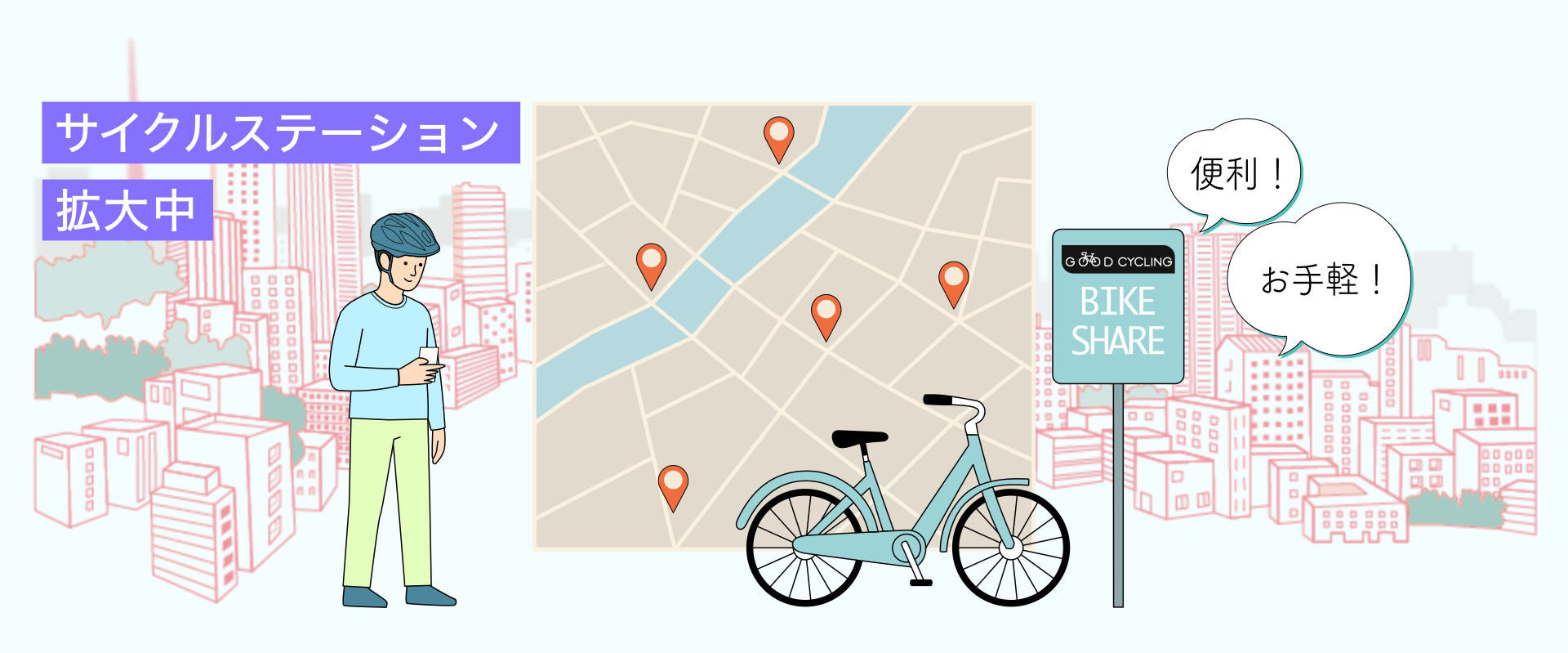 GOOD CYCLINGのシェアサイクルの魅力は便利さと手軽さにあります。
